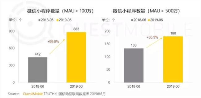 从BAT巨头的动作可以看出,小程序正成为当下移动互联网的机遇。从平台数量也可以看出,小程序正在成为平台标配和互联网基础设施。2018年6月,小程序只有微信小程序和快应用,到2019年6月,360小程序最后加入战场后,市面上已经9家小程序平台,几乎主流的互联网平台都有了自己的小程序。