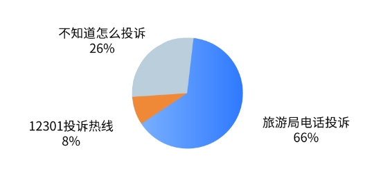 随着公众维权意识的日益增长,越来越多的消费者在旅行期间关注维权方式。值得注意的是,百度搜索结果显示,消费者仅自主搜索旅游局(66%)及12301 投诉热线(8%)进行投诉,且仍有近三分之一的消费者不知道如何采取具体维权措施,尚需搜索如何维权/投诉。
