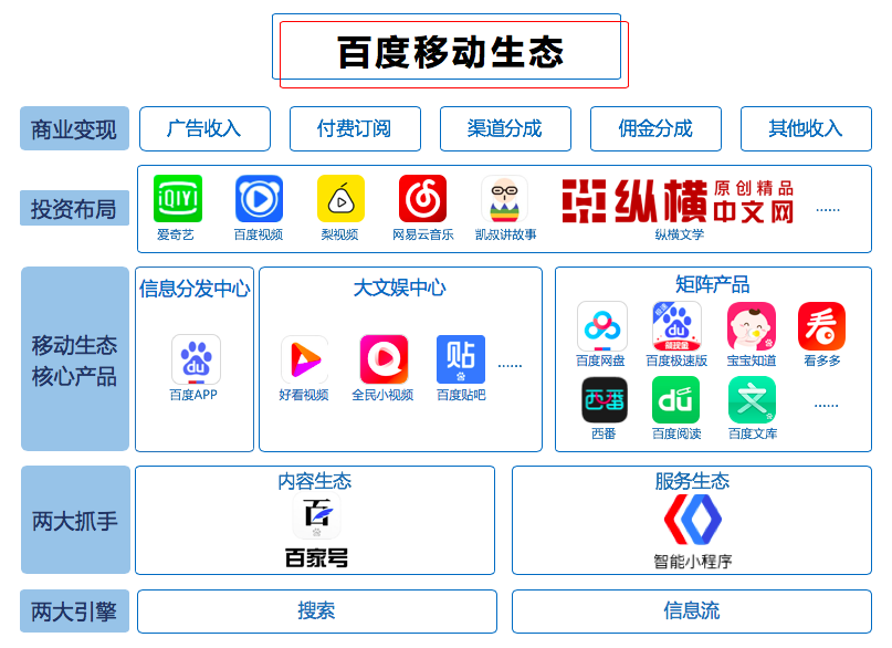 4、最后是产品闭环:百度做产品本质是在做内容服务生态的闭环。