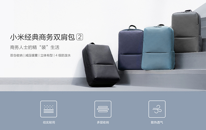 小米经典商务双肩包2发布 4级防泼水