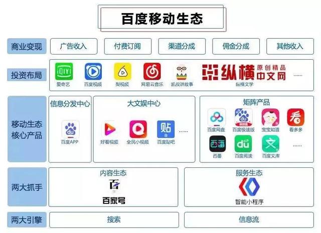 2019年Q1财报发布后,李彦宏在内部信中表示,将继续加强和扩大百度的产品矩阵优势,并在两个引擎驱动的搜索和信息流的基础上,进一步提升到生态思维。