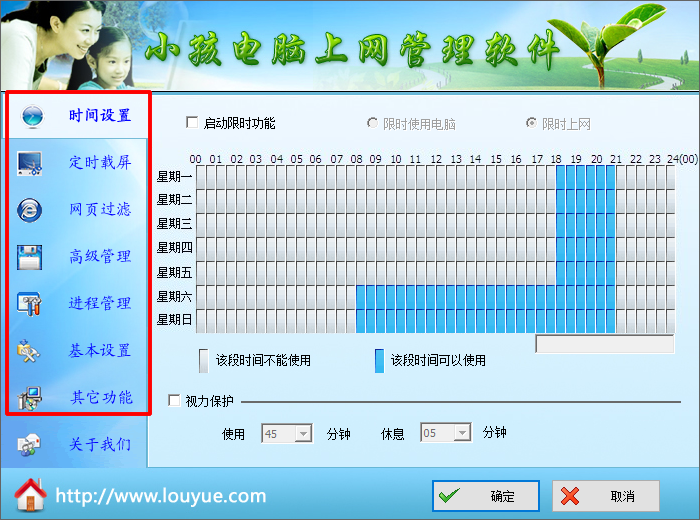 很多家长想要限制电脑只能访问指定的某个网站(通常为学习网站),这样,小孩在使用电脑时,在打开未经允许的网页时,网页上将显示一片空白。再配合进程管理功能,限制小孩电脑运行设定的软件或游戏,这样,家长就可以放心地把电脑交给小孩使用了。