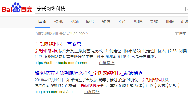 搜索引擎首选百度,我们以百度为例,输入特定的关键词以后,首页展现3-5条信息,即可称为霸屏。