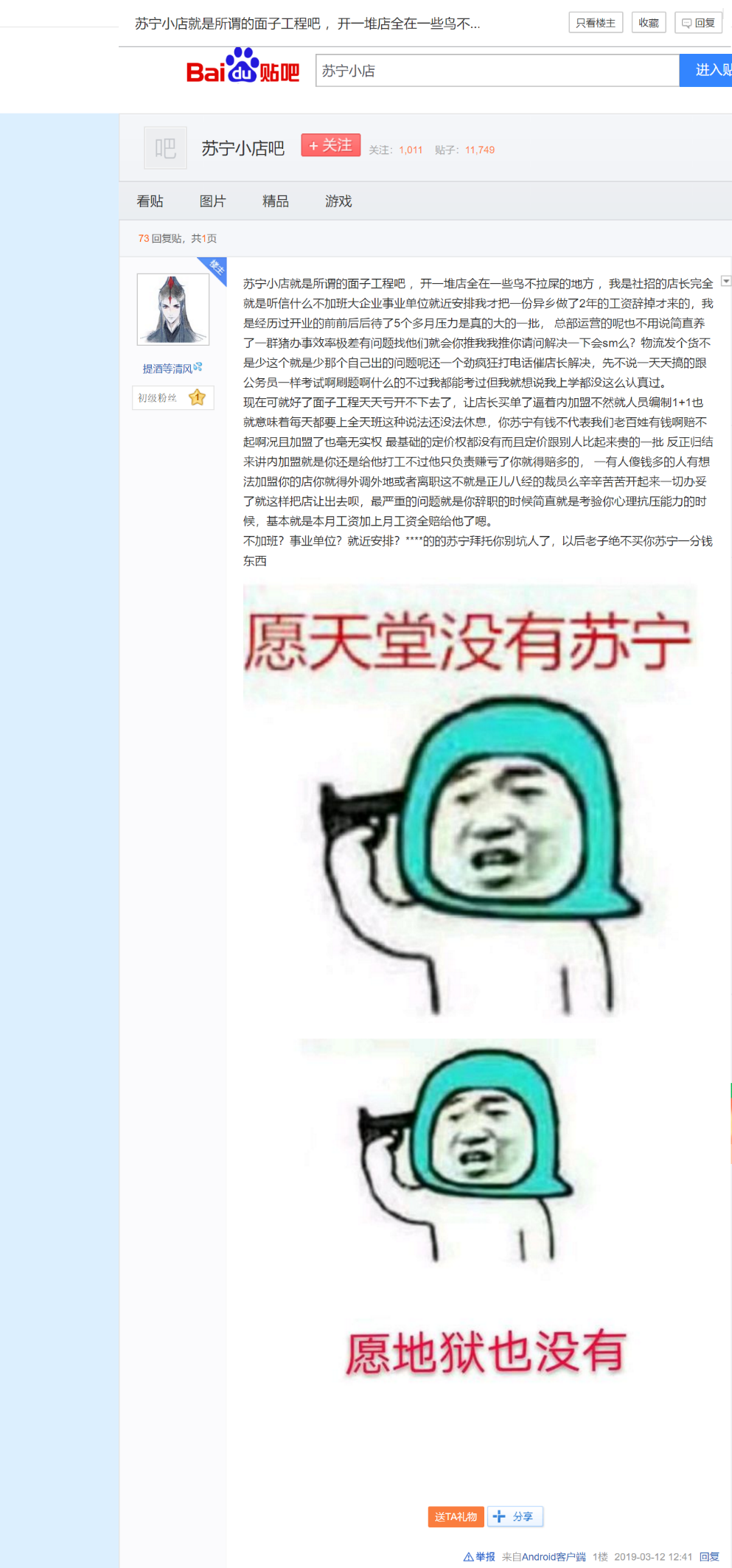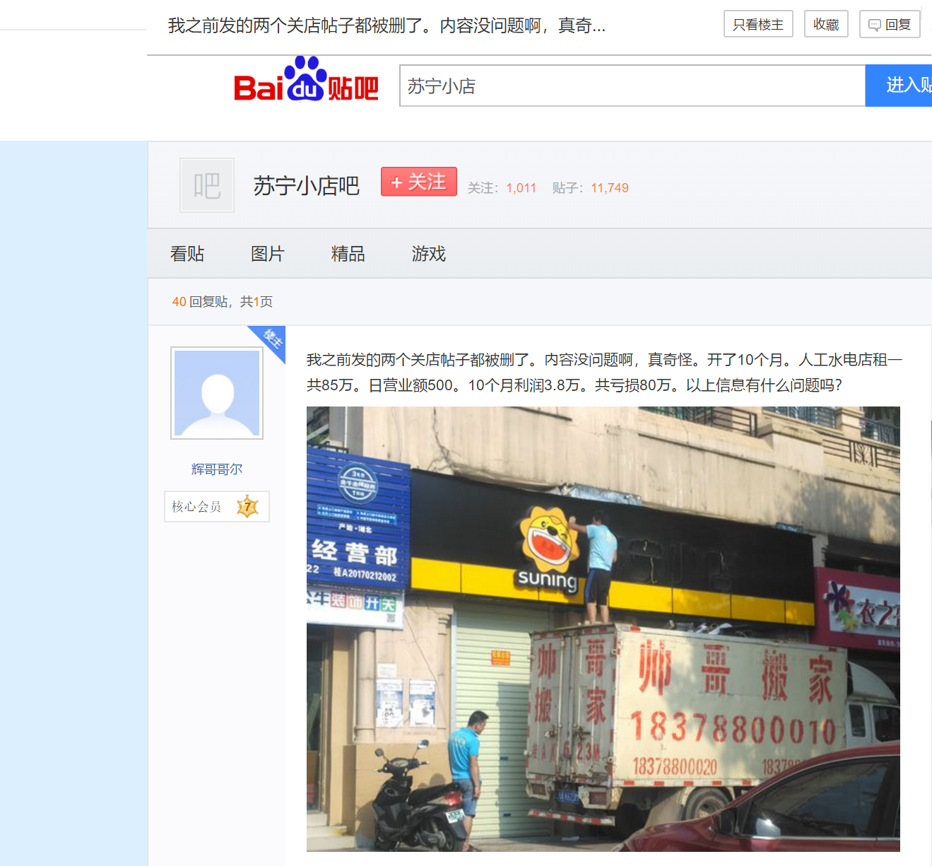 打开百度“苏宁小店吧”,触目可及的都是“关店、离职、无人流”等负面帖子。