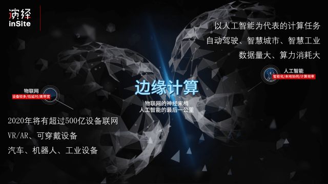 从计算的角度来看,以人工智能为代表的计算任务已经在很多场景落地,给我们提供了更好的生活,比如自动驾驶、智慧城市、智慧工业等等,而这些计算任务都是对计算数据量要求非常大,同时对算力要求非常大的任务,所以在这个汇聚节点上网络需要颠覆性的升级,同时计算也需要颠覆性的升级,而边缘计算恰好就是物联网的神经末梢,也是人工智能去落地的最后一公里。