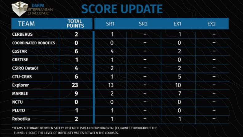 在第二天的比赛中,Explorer、MARBLE、CoSTAR、CTU-CRAS 成绩较好,尤其 Explorer 团队(由卡内基·梅隆大学和俄勒冈州立大学合作组建)得分为 23 分,远超第二名 MARBLE(涉及组织为科罗拉多大学和科学系统公司)团队 14 分。
