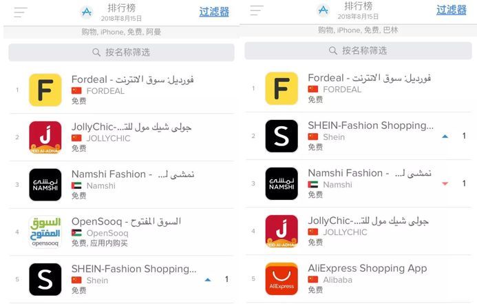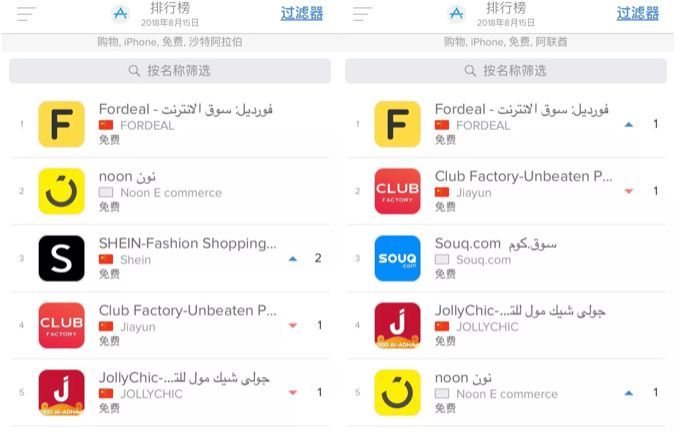 然而,当我们通过App Annie查取中东海湾地区六国的免费购物APP排名时,则出现了较大的不同,在这里Fordeal、Club Factory 、JollyChic、SHEIN已经成为国内电商企业出海中东的先锋,阿里和京东仍需努力!