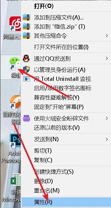 我们右击微信图标-属性-复制路径