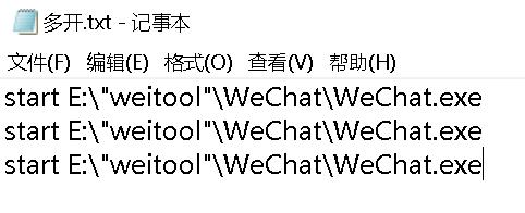 比如我的:start E:\"weitool"\WeChat\WeChat.exe