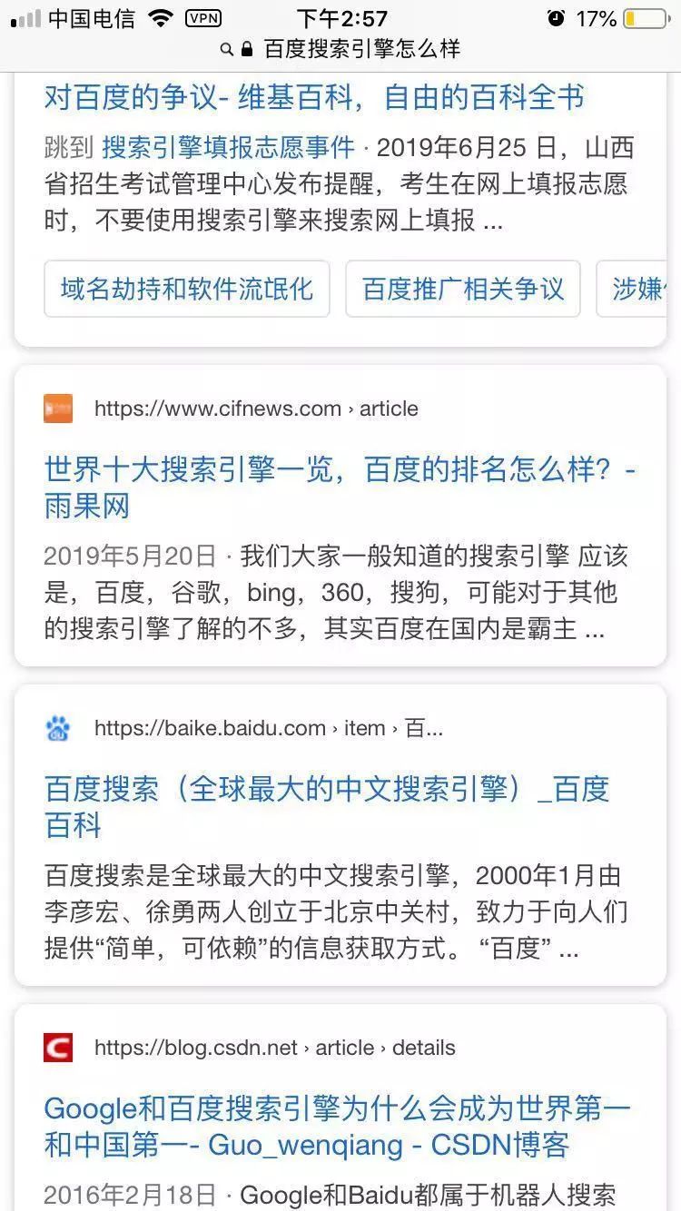 搜索呈现的结果来自于各类网站,之前百度关于「百度搜索引擎已死」一事官方回应,搜索结果中自有内容百家号等只占搜索结果的10%,其余均来自第三方。