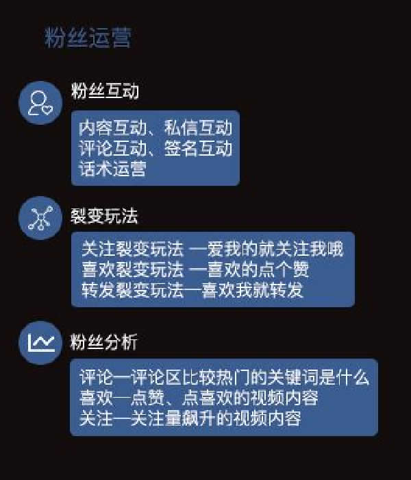 尽量对每一个评论进行回复,与粉丝产生互动,增加粉丝粘性,与粉丝互动代表该视频的一个活跃度。新的短视频发布要充分利用公司内部员工,积极进行评论,尽可能策划一些神评论。一段新短视频要充分利用新上线的一个小时,让其顺利通过第一轮算法审核。