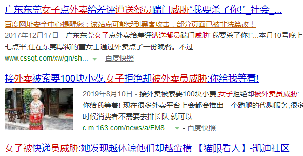 19年1月2日,南京刘女士在某平台点过外卖。外卖员见刘女士面容较好,在其门口徘徊,恐吓威胁刘女士表示想交个朋友。