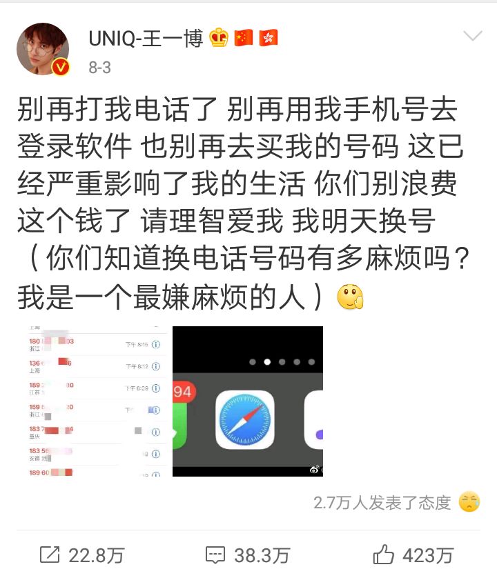 不久之前,演员王一博手机号被不法分子泄露,电话一时之间被打爆,无奈之下只能更换号码。