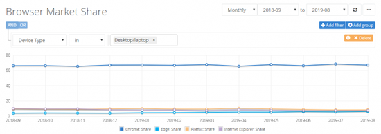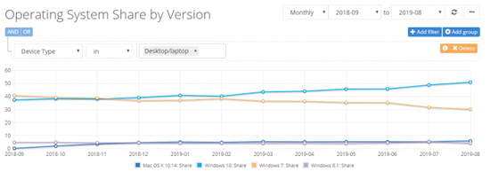 Netmarketshare发布了他们2019年8月的数据,微软在本月表现亮眼,自公司将Windows 10推向客户后,这一主流操作系统终于成功占领了50%的市场份额。而浏览器市场方面,从移动浏览器到PC端产品,Microsoft Edge和Internet Explorer本月的市场份额都出现了小幅下滑。