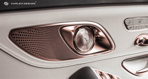 众所周知,迈巴赫S 650内饰虽谈不上极尽奢华,但也是说数一数二的存在。Carlex Design在原车的基础上使用了大量的金色和玫瑰金装饰,配以半苯胺皮革进行点缀。精良的工艺+高级的材质让内饰看上去更像是一件艺术品。