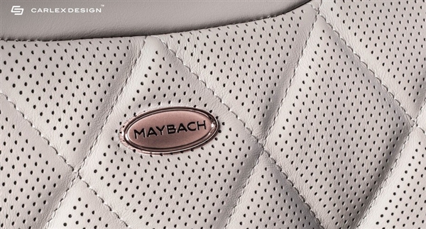 细节方面,单单一个方向盘采用了实木+半苯胺皮革+玫瑰金金属材质进行搭配,皮革座椅椅背上带有玫瑰金“MAYBACH”品牌logo。玫瑰金色的柏林之声音响+Carlex Design改装的视觉享受,尊贵感油然而生。