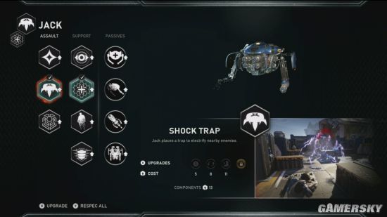 Fergusson表示,《战争机器5》的目标就是让给予玩家选择的空间,这一思路体现在很多方面。其中之一就是机器人伙伴Jack;据称这位机器人伙伴体现一些RPG元素:Jack可以给玩家们提供多种类的助力,它拥有7个战斗技能和4个被动技能,能帮助你掩藏自己、为你提供治疗、放置陷阱等等。玩家们可以通过战役解锁这些能力,也能找到各种组件为Jack安装升级。