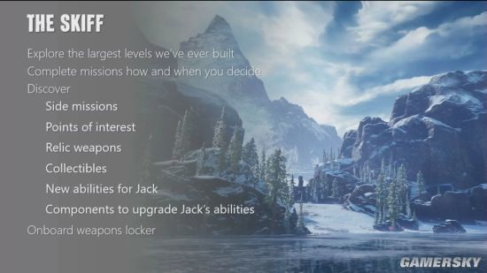 Skiff是一种《战争机器5》中的载具,玩家可以在Skiff上接取支线、搭配武器组合、寻找新的名胜地点和收集品或是为机器人Jack进行新的升级。玩家们可以自己控制游戏节奏,选择是加入战斗还是进行探索。