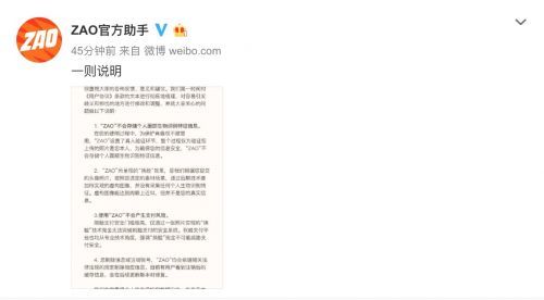 ZAO发声明:不会存储个人面部生物识别特征信息