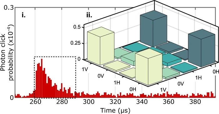 团队使用的钙离子,被悬浮在离子阱中。其使用激光在离子上写入量子态,以激发它发射光子。当这个光子产生时,就具有与离子相同的量子态,意味着两个粒子已实现了纠缠。