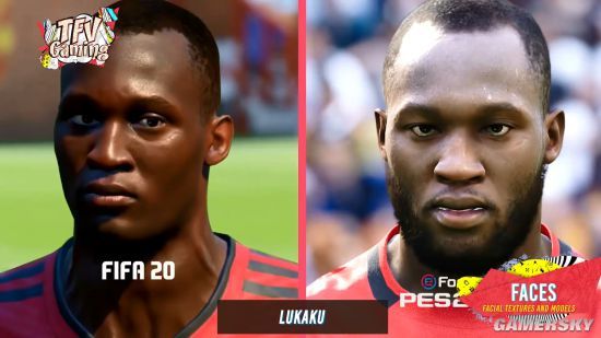 在这段视频中,作者对比了两款游戏的游戏画面、点球操控、任意球操控、比赛用球、庆祝画面等,其中还比较了球员脸模的真实度,可以看出在《实况2020》中,卢卡库、斯莫林、弗雷德、苏牙的脸模比《FIFA 20》中的更为真实,不知各位怎么看待这两款游戏呢?