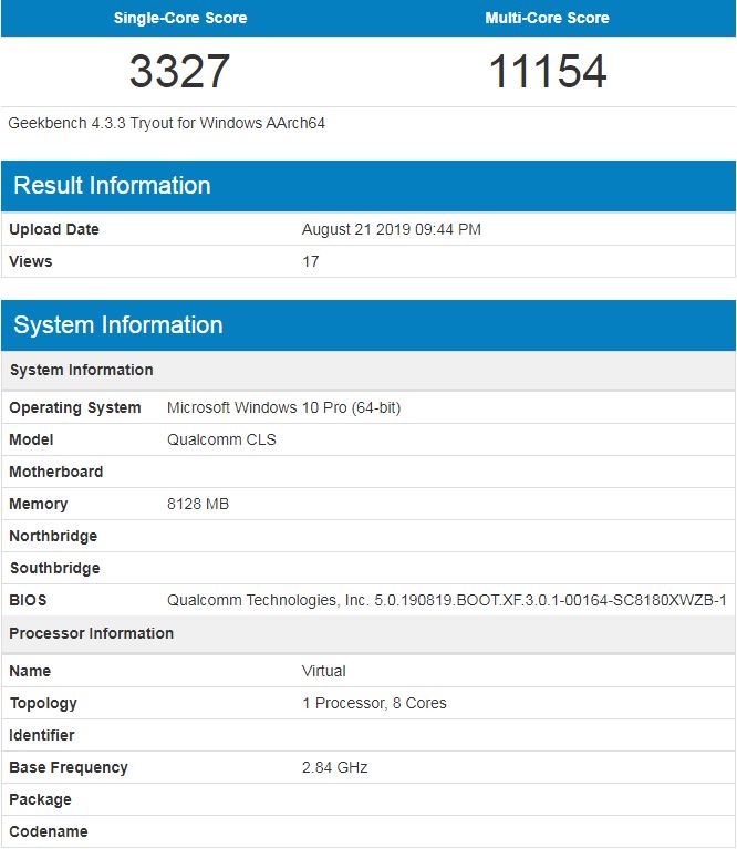 Geekbench新收录两份高通骁龙8cx芯片的Windows 10基准测试成绩