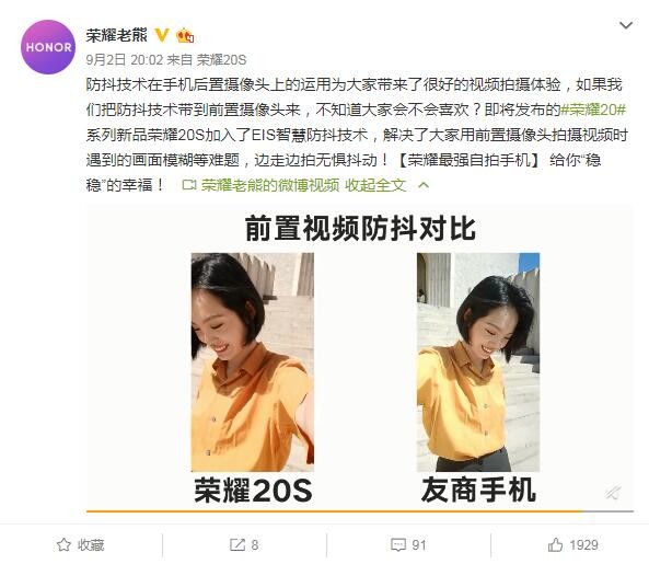 9月3日,荣耀业务部副总裁荣耀老熊微博介绍称,荣耀20S在专业的AI-Benchmark测试中,AI性能跑分35130分高居排行榜第一名,看来荣耀20S手机值得大家期待。
