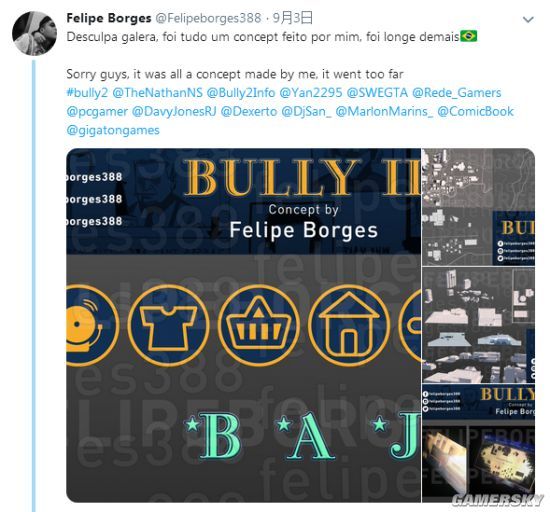 有推特网友@Felipe Borges出来承认,这些图片其实并不是真的《恶霸鲁尼2》,他致歉道,那些图只是他做的一些概念图,这太离谱了。