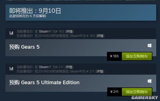 《战争机器5》之前在 Steam 上开启了预购,并且在游戏发售前就把标准版价格从249元下降到了163元,前几天游戏开启预载时仍然是可以预购的状态,不过今天国区却无法购买了。