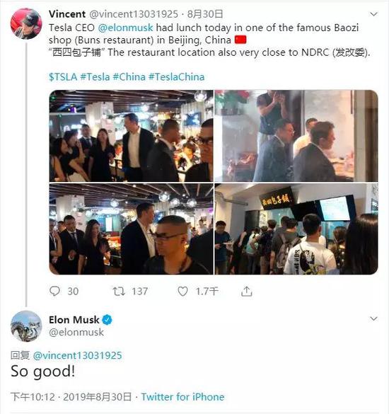 8月底,马斯克来到中国,表达了一番惊叹,吃了那顿包子。