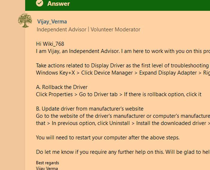 在Microsoft Answers上,一位用户写道