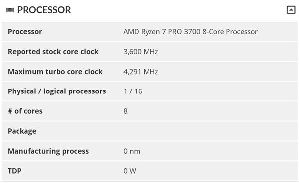 硬件曝料大神ASISAK近日发现,3DMark测试数据库中出现了AMD的一款新型号商务处理器 锐龙7 PRO 3700 。