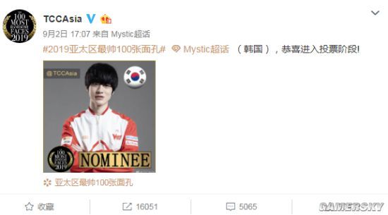 根据规则,投票需要关注@TCCAsia官博,并转发候选人入围微博,截止发稿前,在不到一天的时间内,阿水的转发量已经达到了14469次,在此前 已经入围的WE选手Mystic 转发量也达到了16051次,而其他入围的选手票数远不及这两位。