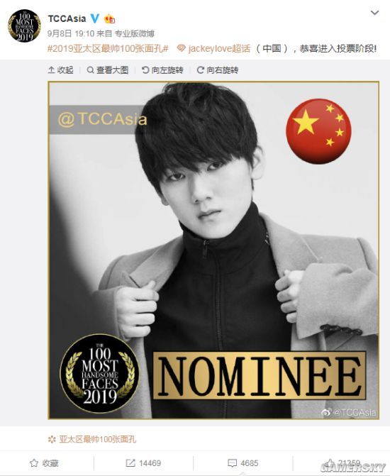 @TCCAsia 官博发布消息,《英雄联盟》iG战队的JackeyLove入围2019亚太区最帅100张面孔,一起来了解一下。