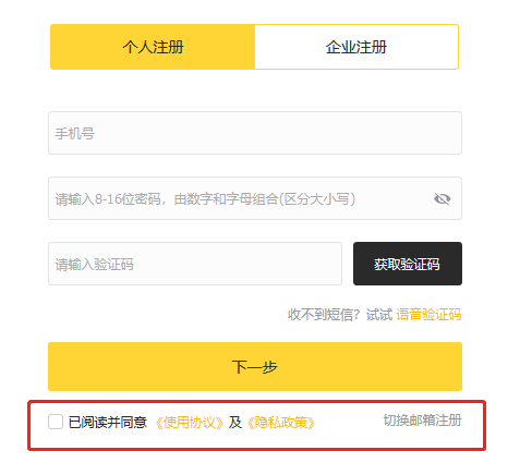 其次,我们可以在一些需要用户特别注意的重要条款上进行加粗、倾斜、下划线等操作突出显示,尽可能地尽到己方提示、说明的义务。在页面设置上,要让用户主动勾选同意后,才能点击下一步,而不能设置默认勾选同意。