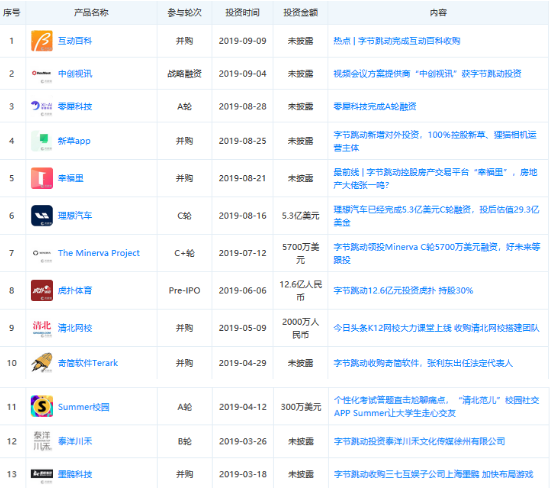 锤子、虎扑、理想汽车、互动百科……据不完全统计,2019年字节跳动发起投资/并购十余起,已曝光的投资额就达20亿人民币。