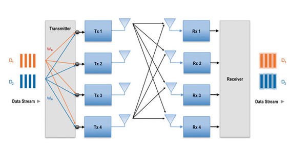 MIMO(Multiple-Input Multiple-Output)是指在发射端和接收端分别使用多个发射天线和接收天线,它与传统的信号处理方式的不同之处在于其同时从时间和空间两个方面研究信号的处理问题,从而能够在不增加带宽与发射功率的前提下,提高系统的数据速率、减少误比特率、改善无线信号的传送质量。