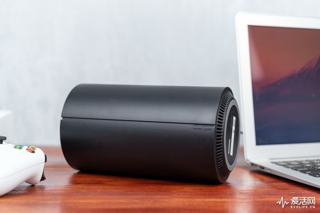 小米路由器AC2100采用了一套和产品家族中其他成员完全不同的模具设计——圆柱型机身很容易让人联想到Mac Pro,选择这么做的理由是小米希望在这其中加入360度隐藏式全向天线,这并非是全新的概念,好几年前,在802.11n和802.11ac过渡的那段时期就有一些厂商试过这种路数,但最后都没有贯彻下去,现今我们只会在一些网状WiFi产品上看到柱体设计的路由器/节点。