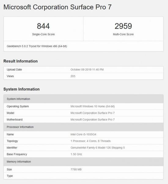 用户提前收到Surface Pro 7:GeekBench 5跑分曝光
