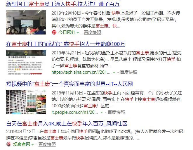 网络上流传着某些富士康大V依靠短视频招工曾入百万的传说