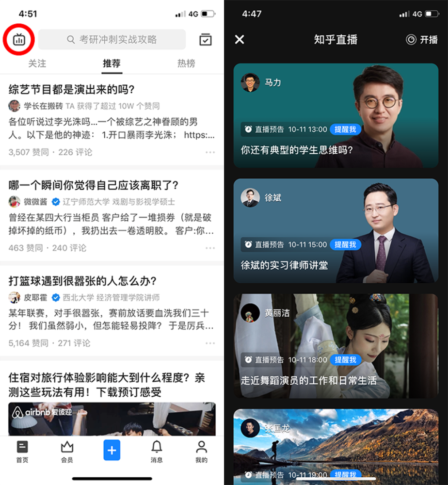 知乎正式上线直播功能,用户可通过弹幕对谈等与主播互动