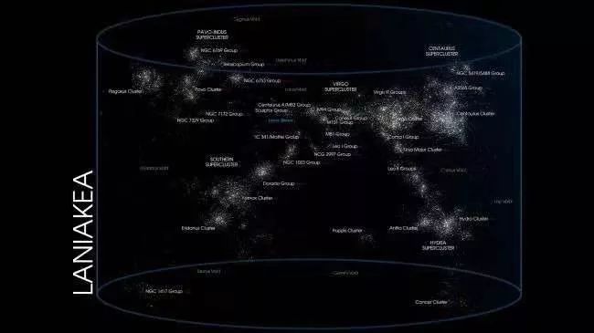 拉尼亚克亚取自夏威夷语中“天空”(lani)与“辽阔无际”(akea)两个词的组合,真是“人如其名”,我们的银河系只是其中的“沧海一粟”。尽管它没有正式的界限,但天文学家估计它包含大约10万个星系,总质量约为太阳质量的1000亿倍,跨越5.2亿光年的距离。
