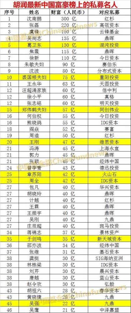 私募富豪榜来了:沈南鹏300亿张磊220亿,葛卫东骤降30亿