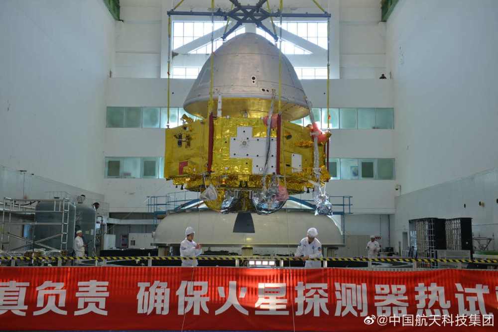 中国航天科技集团公布了我国火星探测器测试的照片,并配文“首公开,我国火星探测器“真容”在此!”。