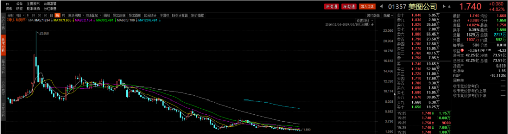 3亿用户量级的美图(HK:01357),股价表现如下: