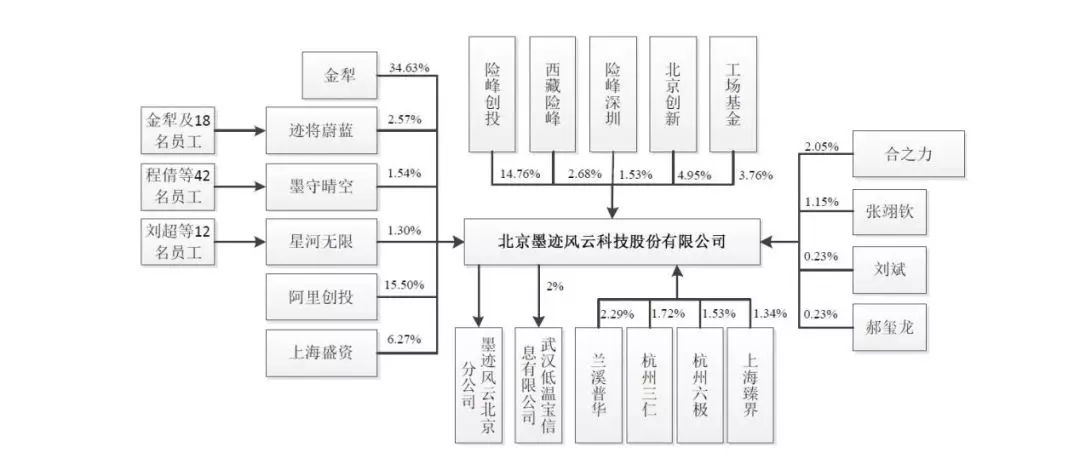 除了“阿里系”之外,墨迹科技股东还包括险峰系(险峰创投、西藏险峰、险峰深圳)、创新系(北京创新、工场基金)、上海盛大旗下子公司参与GP的有限合伙企业上海盛资,其中险峰系股东合计持有18.97%的公司股份,创新系股东合计持有8.71%的公司股份。