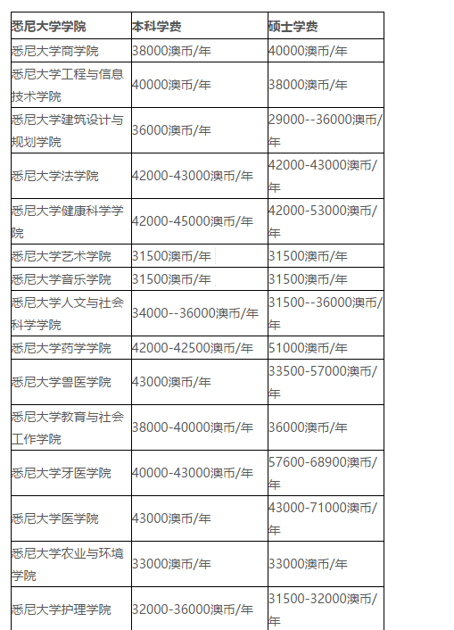悉尼大学学费是多少(含各专业学费)?