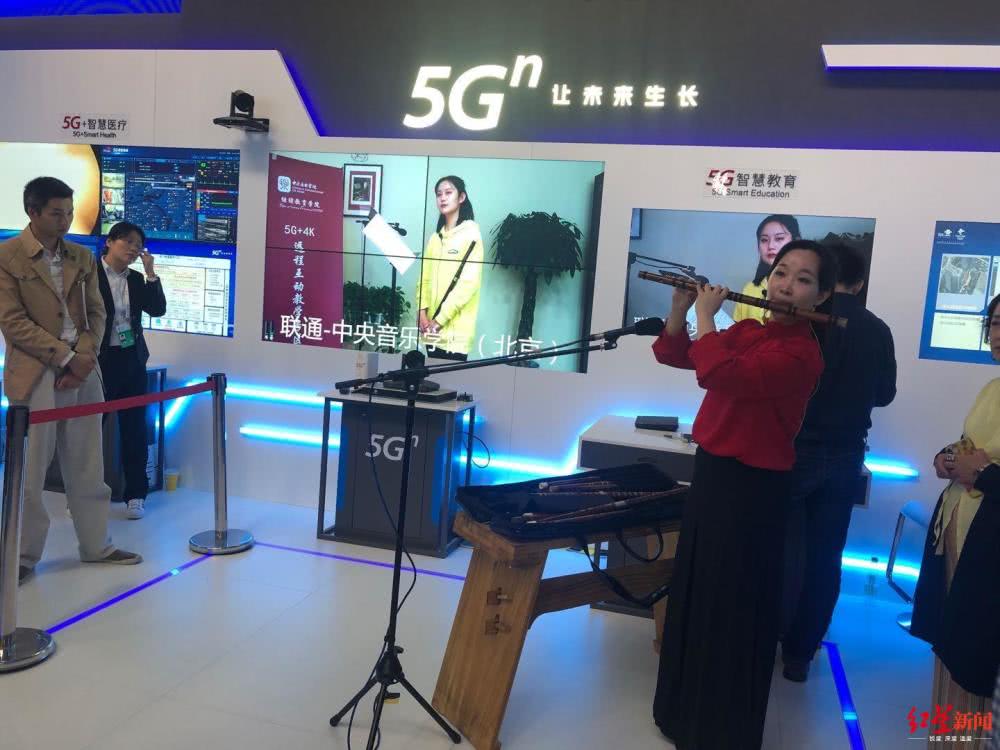 在中国联通展示的一场远程教学则更具趣味。这是一场竹笛的教学课程。学生并不在会场,会场只是老师的授课场景。也许正是为了展示5G的低时延特性,老师吹着悠扬且灵巧的变调,从屏幕传回的远程学生的状态竟是一致的随着曲调的变化而摇晃着头和身体,仿佛学生就在现场老师前面,伴着老师的笛声不自觉的摇摆身体。