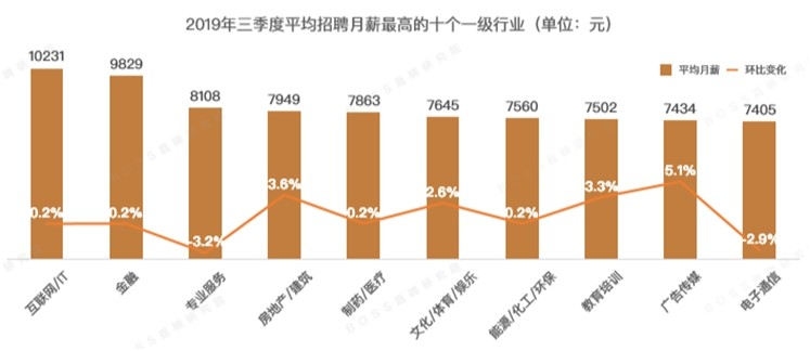 中新经纬客户端10月22日电 BOSS直聘发布《2019三季度人才吸引力报告》。报告显示,三季度,人才市场需求同比增幅为19.9%,环比增幅为28.8%。北京白领平均月薪达12312元继续领跑全国,北京、杭州、广州为最具吸引力城市。三年以上工作经验的熟手成企业抢夺对象,需求环比增长16%。此外,光传输工程师、无线射频工程师、电信网络工程师等通信类岗位均有显著的薪资涨幅。