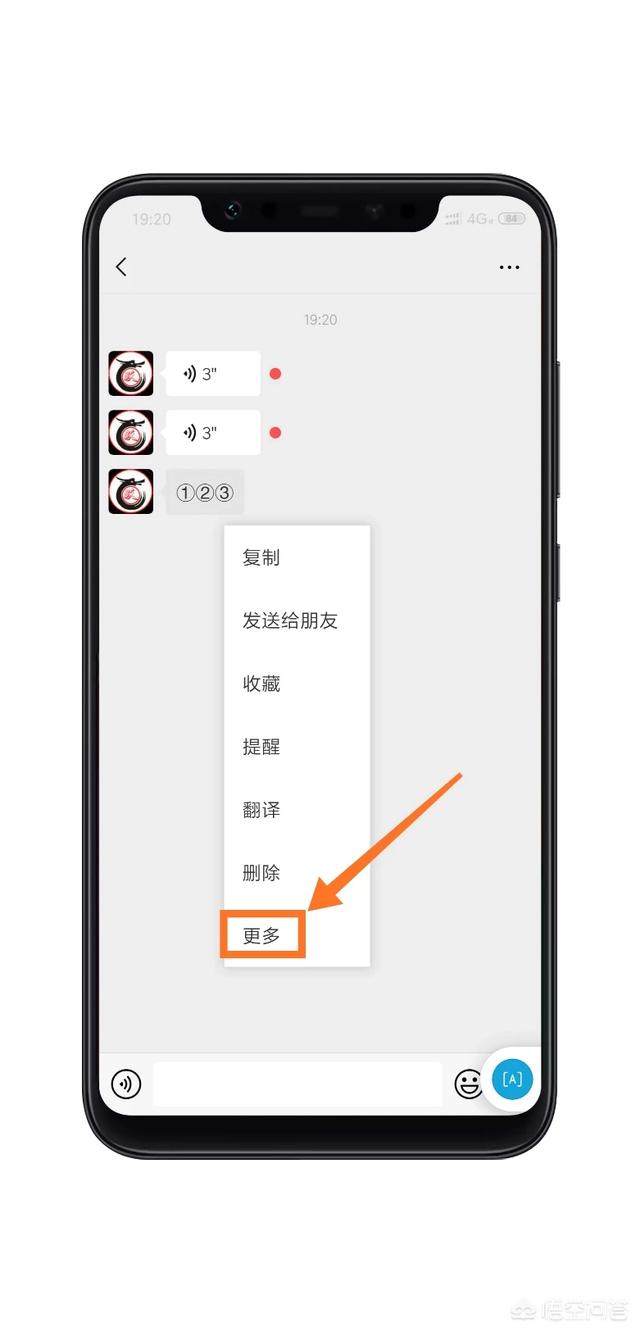 1,长按聊天记录任意一条消息,点击【更多】